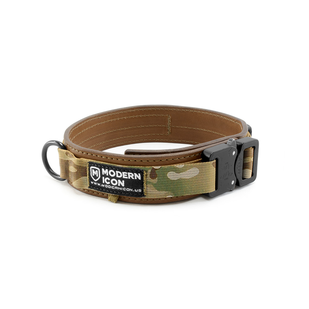 The Leather Lined 1.5” Summit Collar is a lightweight, dog collar designed using tactical materials for urban and outdoor activities. Inspired by our heavy-duty Leather Wrapped 1.5” Rigid collars, the Leather Lined Summit Collar provides the same high-end luxury leather and rugged appearance with less weight and is perfect for medium to large breed dogs.